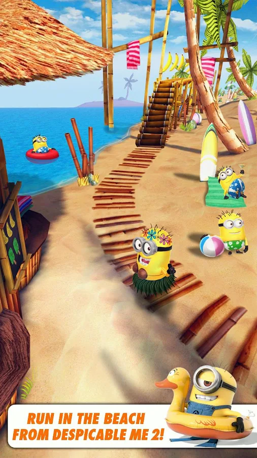 Gru’s loyal, yellow, gibberish-speaking Minions are ready for their toughest challenge in Despicable Me: Minion Rush. Play as a Minion and compete with others in hilarious, fast-paced challenges in order to impress your boss, (former?) super-villain Gru! Jump, fly, dodge obstacles, collect bananas, be mischievous, and defeat villains to earn the title of Minion of the Year!